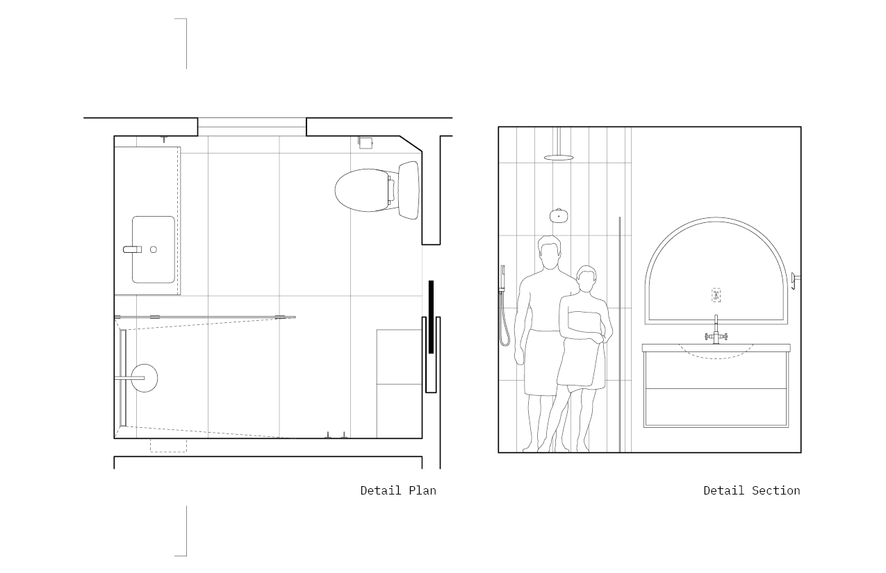 This residential remodel reconfigured the layout of a 1920s Oakland home to improve guest access and create a true primary suite. Working closely with the clients, I reorganized circulation to reduce wasted space, added a centrally located guest bath with two access points, and designed a spacious new primary bathroom and closet. The intervention preserves the home’s historic character while improving functionality, incorporating new plumbing and HVAC upgrades into an efficient and elegant floor plan.