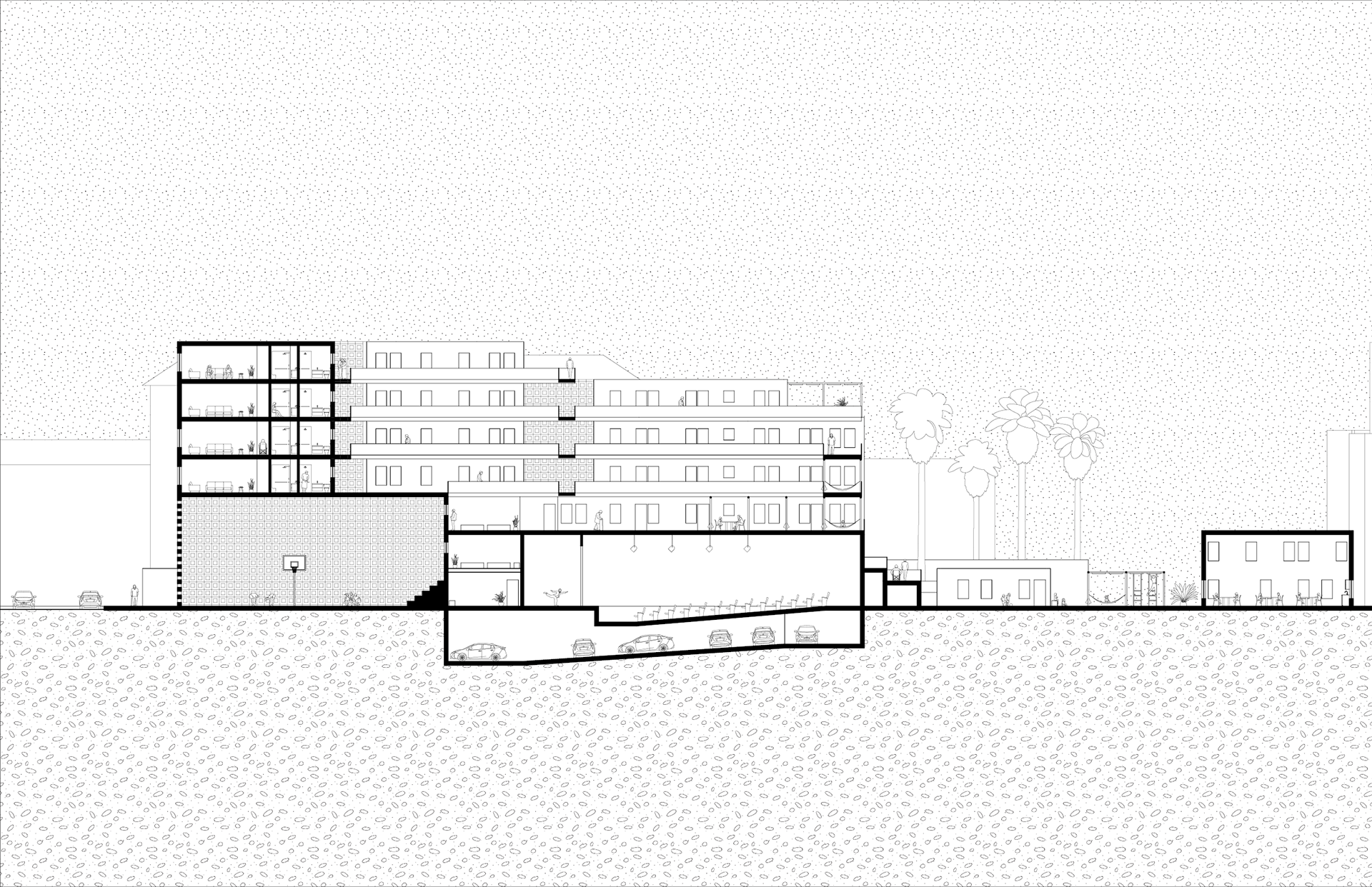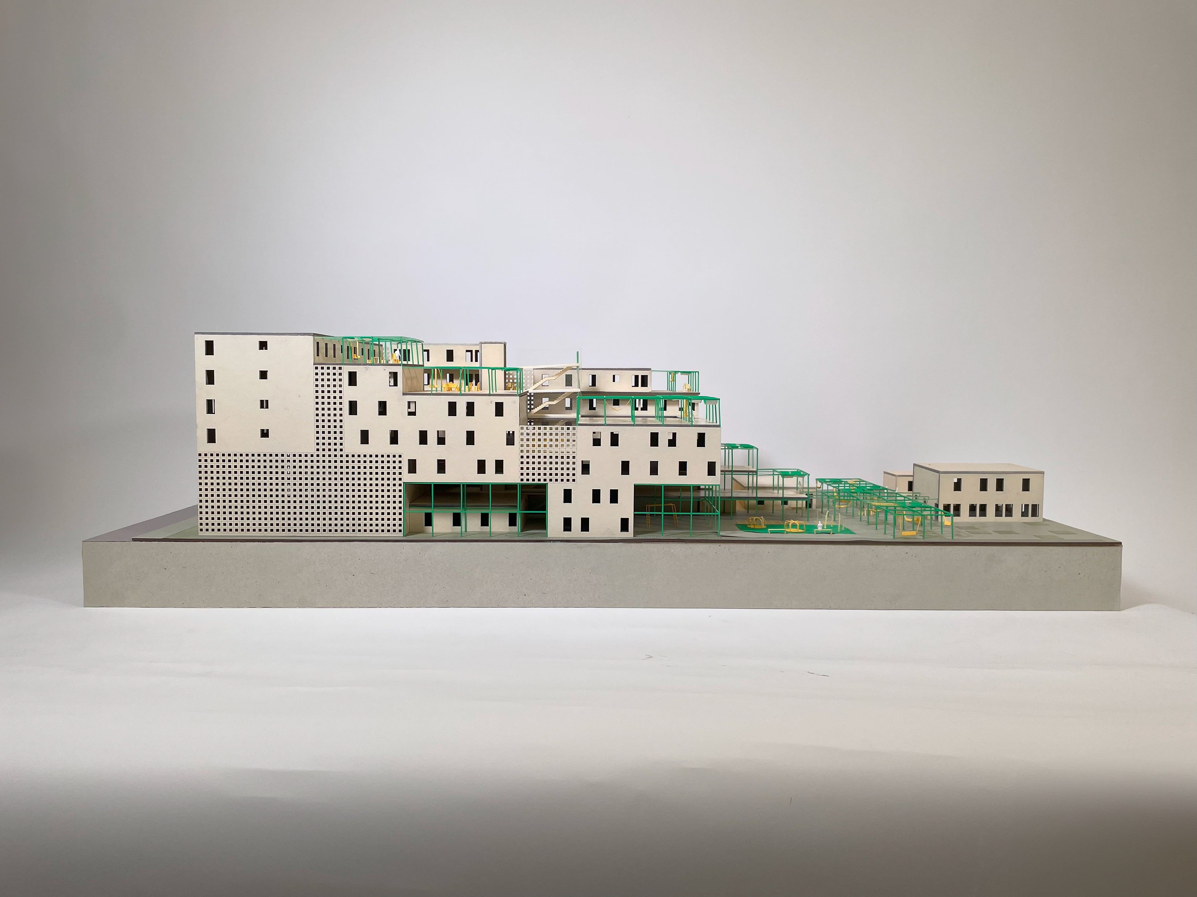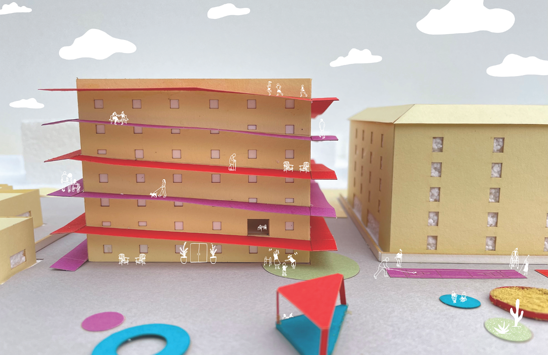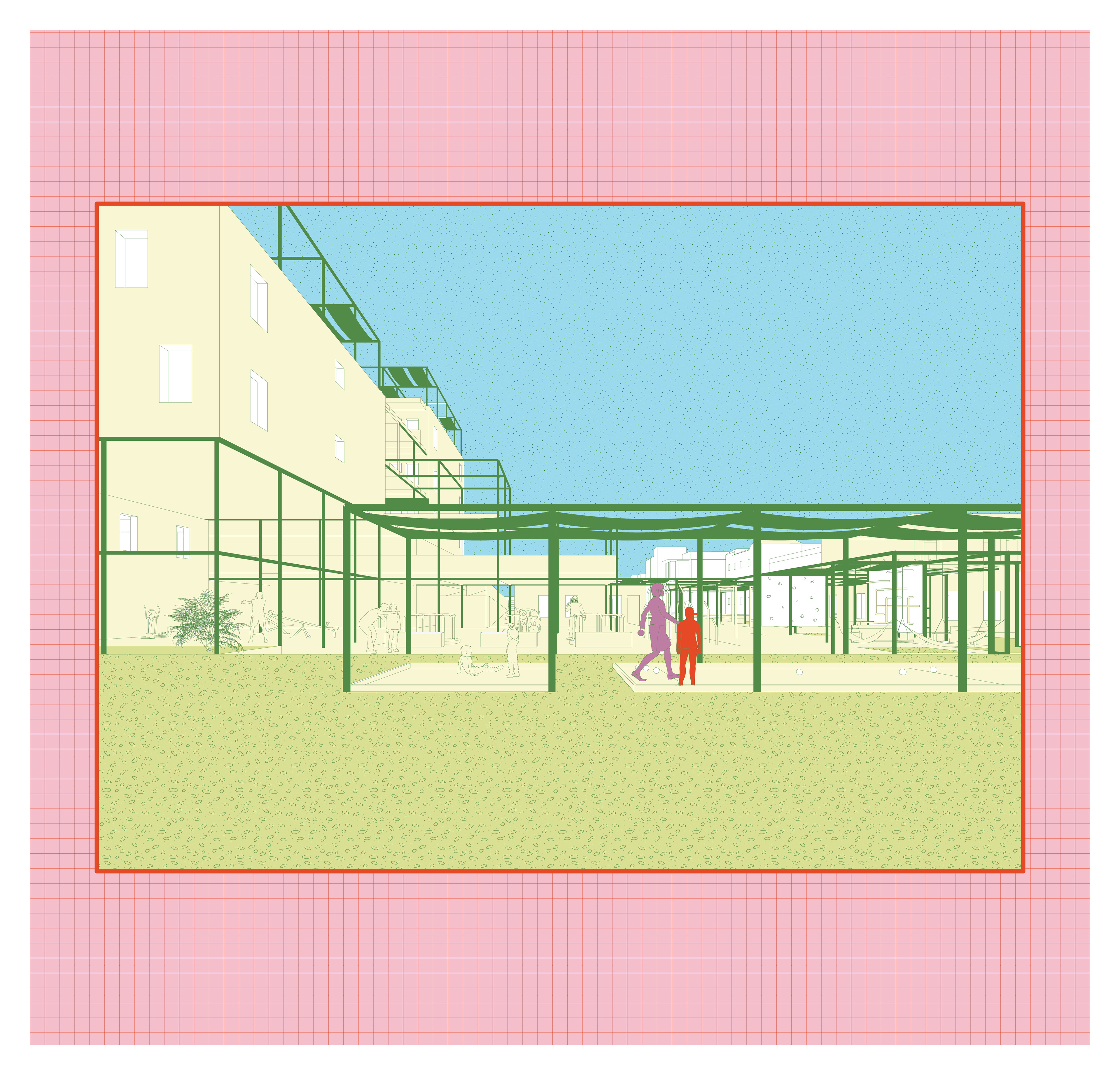 This prototypical project can be applied across Los Angeles, tackling the city’s severe housing crisis, evident in the Los Angeles Housing Element, while also addressing urban heat island effects, social isolation, and a growing aging population. Elementary school campuses in LA are currently covered in heat-absorbing asphalt playgrounds, intensifying the heat island effect. This project draws from research demonstrating the positive effects of intergenerational programs on older adults and young children, as well as innovative strategies for reimagining underutilized land on elementary schools owned by one of the largest landholders in the city, the Los Angeles Unified School District (LAUSD). The project proposes a prototype for independent living senior housing on LAUSD elementary schools, complemented by redesigned shared play spaces and improved arts and fitness facilities. This holistic approach offers a scalable solution to the housing crisis, social connectivity, and heat mitigation, targeting up to 140 elementary schools strategically selected based on their proximity to hospitals and public transit.